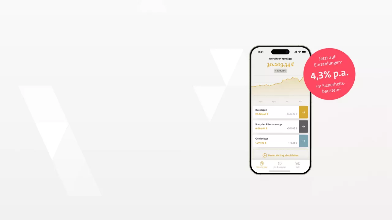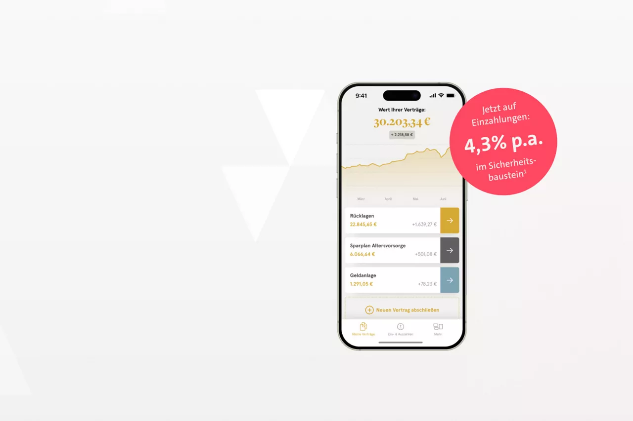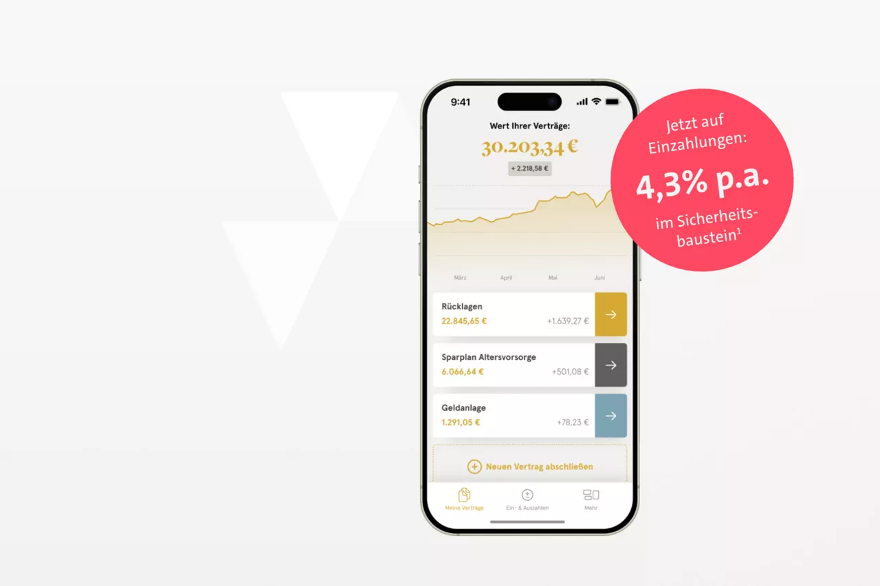 Das Sicherungsvermögen der Allianz bildet den Sicherheitsbaustein. Einzahlungen in den Sicherheitsbaustein werden derzeit mit 4,3 % p.a.1 verzinst.