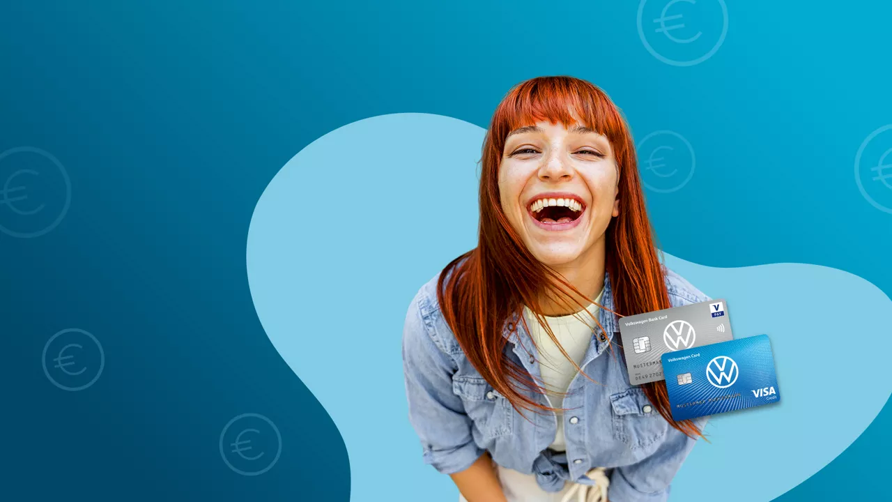 Sie erhalten zu Ihrem Girokonto kostenlos eine Volkswagen Bank Card (Debitkarte). Auf Wunsch können Sie eine Kreditkarte gleich mit abschließen: Wählen Sie zwischen unserer Volkswagen Visa Card3 mit attraktiven Rabatten oder unserer kostenlosen Visa Card pur.